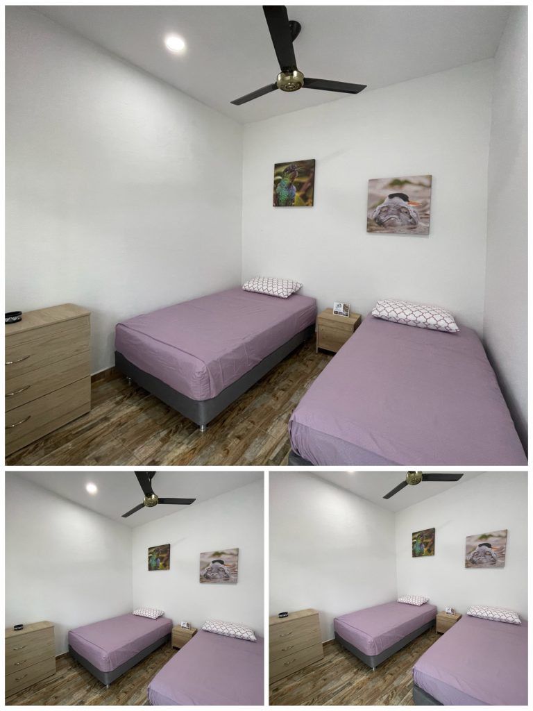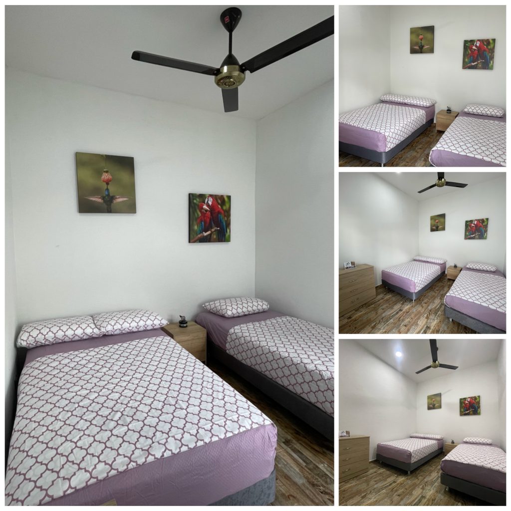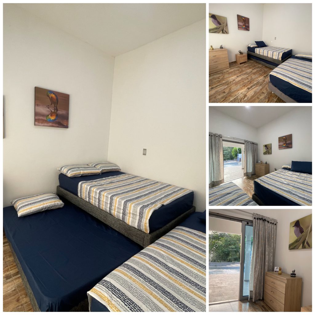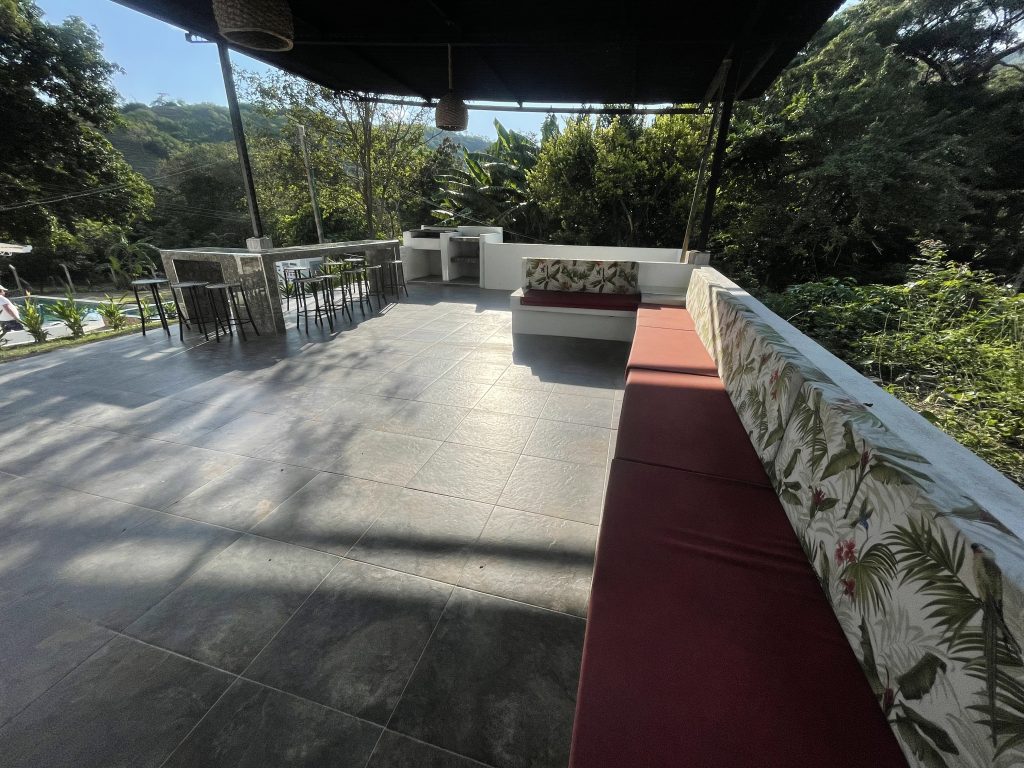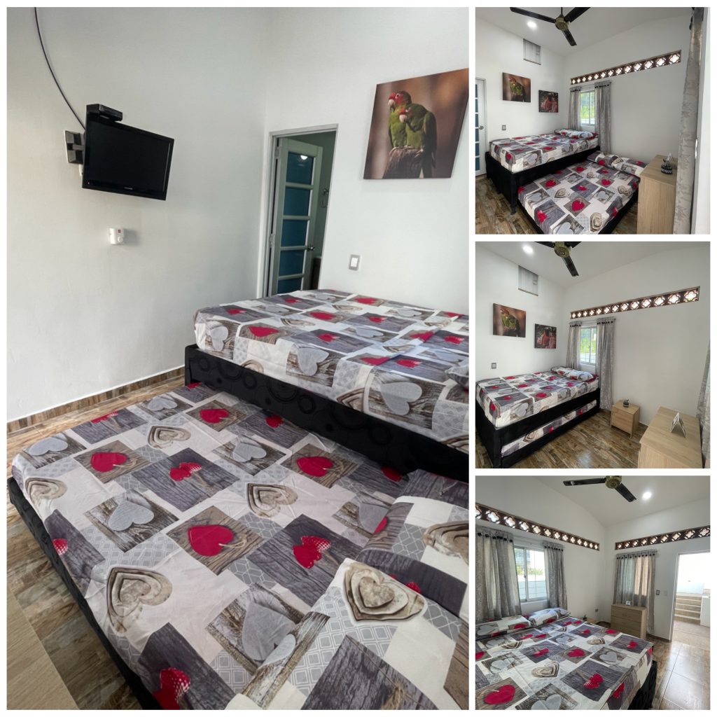 Piscina sin fin ideal para niños y adultos.Piscina con chorros recreativos y luces de colores nocturnas, amplio jacuzzi para 16 personas.Kiosco de 90 mts cuadrados, amplia sala tipo L, mesón con barra americana de 3mts, televisor de 60 pulgadas con señal satelital con más de 80 canales. Espacio ideal para reuniones, eventos y pista de baile.Cómodos patios exteriores.habitación 1: Cama doble y cama auxiliar matrimonial pequeña, tv de 32 pulgadas con servicio de aire acondicionado.Habitación 2: Cama semidoble y dos camas sencillas una de ellas tipo nido, servicio de aire acondicionado.Habitación 3: Habitación principal con baño privado, servicio de tv, cama matrimonial doble con nido auxiliar semidoble, ventilador de techo.Habitación 4: Dos camas sencillas con ventilador de techo.Habitación 5: Cama matrimonial pequeña y cama sencilla con ventilador de techo.Hermosa cocina campesina con estufa a gas, horno y estufa de leña, totalmente dotada para preparar y servir alimentos, gran variedad de electrodomésticos nuevos a disposición del huésped.Tres baños en total, con ducha y división en cristal.Amplia zona de parqueadero